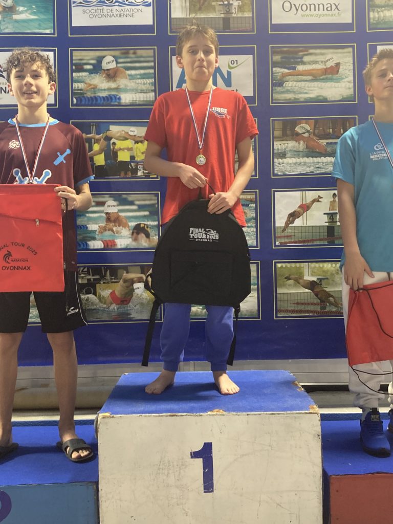 Le dimanche, programme moins chargé en courses pour Victor, mais pas pour autant en longueur puisqu’il est engagé sur le 200 dos dans la matinée, et plus tard dans l’après-midi sur le 400 NL. Sur sa distance de prédilection (200 dos), il a tout donné, et a magistralement géré sa course de bout en bout. Encore à la bataille avec ses concurrents au troisième 50, il a finalement creusé l’écart dans le dernier 50, montrant ses qualités d’endurance et de résistance. Au final, un excellent temps de 2’42 et un nouveau record du club catégorie 12 ans. Bravo à lui ! L’après-midi, il s’affirme sur le 400 NL en signant un beau 5’18’’, soit 35 secondes de moins que le dernier 400 NL réalisé 6 mois plus tôt. Encourageant pour celui qui veut s’essayer l’année prochaine sur des distances plus longues. Il termine la compétition en battant son record sur 50 Brasse en 43’’.