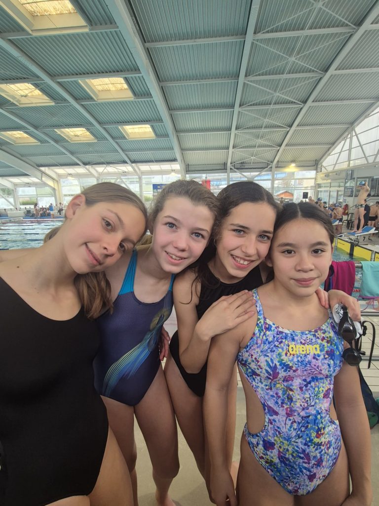Chez les filles, Maëly et Anaïs battent notablement leur record personnel sur 50m dos, 37’’3 pour Maëly qui franchit le cap 800, Anaïs en 37’’9. Erine n’est pas loin de son record (40’’5). Julia arrive au pied du podium au terme d’une série finale très disputée. Un beau chrono de 36’’80 au bout de la course. Ce n’est pas mieux qu’à Bourgoin-Jallieu mais très satisfaisant!