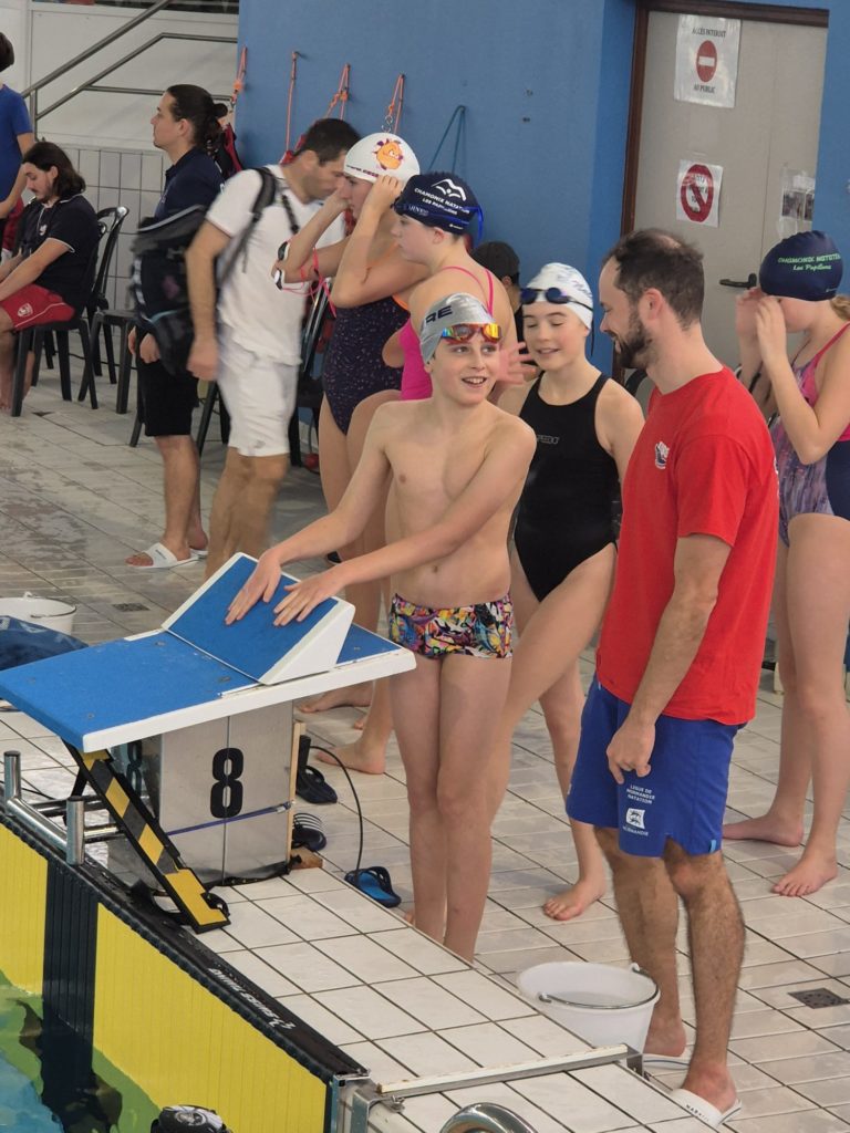 L’après-midi, Maëly s’élance pour un 400NL, avec à la clé un temps de 5’51’’. Belle expérience pour celle qui n’en avait pas fait depuis un moment. Dans la foulée, Victor s’élance sur sa nage de prédilection, le dos. Sur le 100m, il avait à cœur de partir vite et maintenir sa vitesse le plus longtemps possible. Malgré un virage et une arrivée ratée, Victor exulte à l’arrivée, il remporte sa série finale et surtout signe une belle performance (1’17’’), soit trois secondes de mieux qu’à Bourgoin-Jallieu. Bravo à lui!