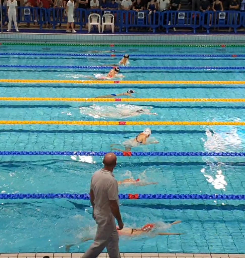Rien ne présage d’une grande forme de la part de la brasseuse. Les chronos au 25m ne sont pas les meilleurs qu’elle a fait. « On verra bien ». À peine l’échauffement terminé, les nageuses du 50m brasse ont à peine le temps de se sécher, se changer, elles doivent filer tout de suite à la chambre d’appel. Le corps aura au moins l’avantage de ne pas se refroidir. Lise est dans la série finale des filles 2013 nées au premier semestre. (Les organisateurs ont décidé de faire un classement additionnel et un podium par semestre de naissance). À la ligne 1, la position n’est pas idéale pour avoir un coup d’œil sur ses concurrentes, néanmoins, elle pourra se concentrer sur sa nage et foncer vers l’arrivée le plus vite possible, sous les yeux de sa maman venue pour l’occasion.
