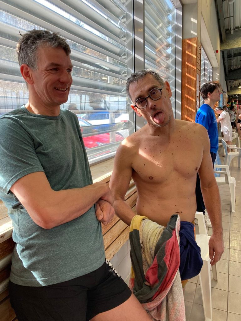 L’équipe survoltée abordait donc l’après-midi avec un mental d’enfer. Rien de mieux pour propulser un Pierre Jaillet en doute profond vers les sommets du 200 4N qu’il conclut en 2’29 »04, soit 5 » plus vite qu’en 2025 mais surtout avec plus de 200 points de plus que l’année dernière. Au 50 papillon nos adversaires ont du penser qu’ils allaient remonter la pente mais ils ignoraient la force de notre joker, Etienne Castagno qui, auteur d’un 27 »53, maintient la trajectoire hors norme de l’USSE 2026 (1092 pts de plus).