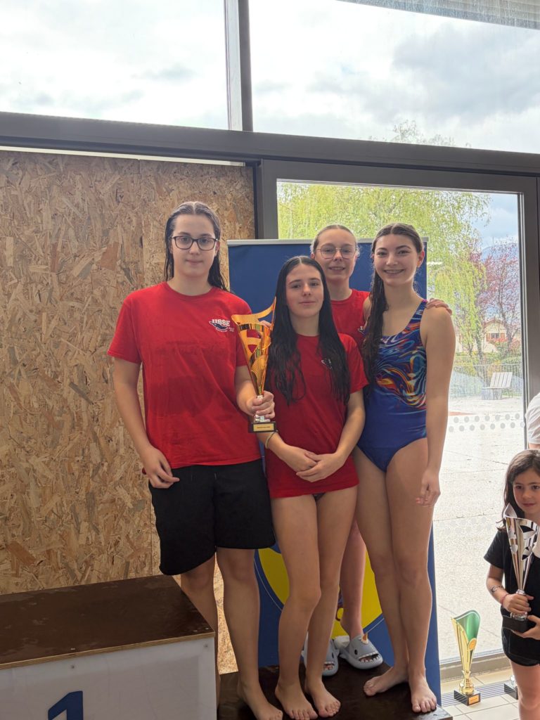 Amélia a idéalement lancé le relais 4×50 NL en 35’’61, pour le donner à Léana (37’’24). Heidi a creusé l’avance (36’’92) et enfin Charlie a confirmé par un très beau aller-retour glissé (38’’65). L’autre relais en a fait de même avec Suzanne (43’’22), Victoria (43’’21), Océane (45’’54) et Anaëlle (45’’25)! Quelques belles performances qui ne sont pas passées inaperçues dans ces deux équipes : Léana sur 50 dos (43’’77), Océane sur 50 Brasse (57’’39), Anaëlle sur 50 pap (52’’02) et Amélia sur 50 Brasse (50’’96). Bravo aux filles!